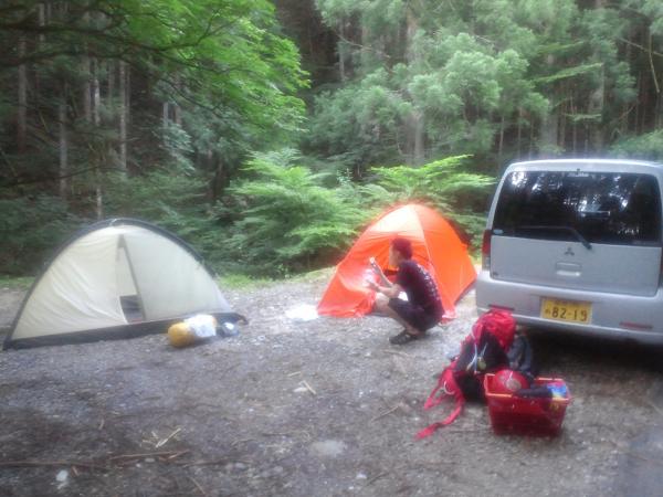 今回初めてのコースの為、若干の不安がありましたが、林道終点近くに宿泊適地があり、快適な前泊となりました。