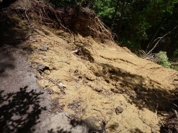 - 最近の大雨の影響と思えるが、明智超で3箇所程、愛宕山の表参道の道でも1箇所の道の崩落が見られますので注意下さい。
