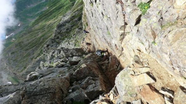 小屋を夜中に出発したのと場所によっては吹きさらしの所があり、結構寒かったです。西穂高岳を過ぎると ほとんど岩場 要ヘルメットです DVDなどのコースと少し変わっている所があった様なので目印の確認を 穂高岳山荘から涸沢までもプチ鎖場 ハシゴ等有であなどれません 涸沢小屋からも雪が残っていて雪渓歩きです あとは楽しく長いハイキングでした