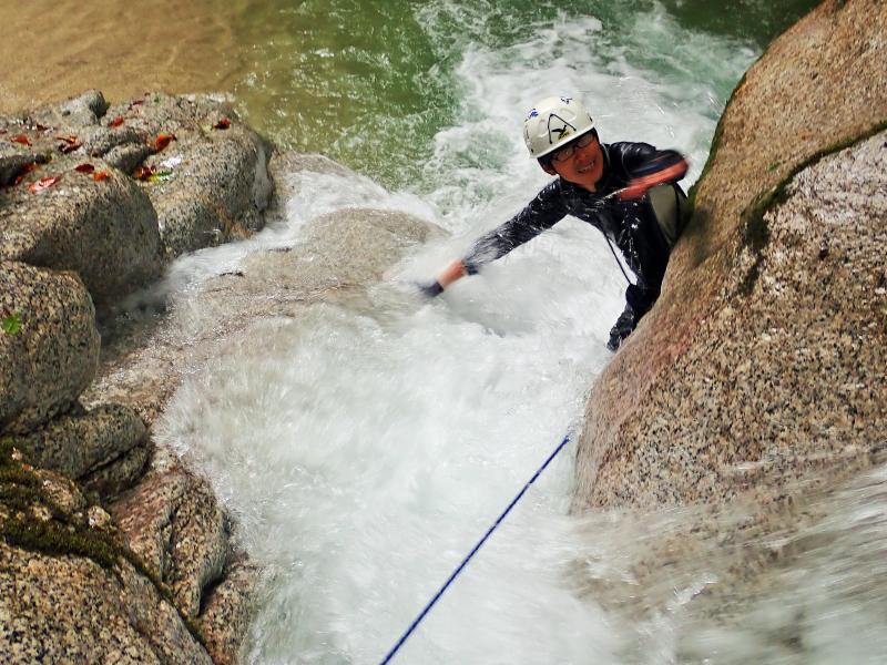 「沢登りは初めて!」のスタッフ4名と、3年ぶりに沢登りに行きました。