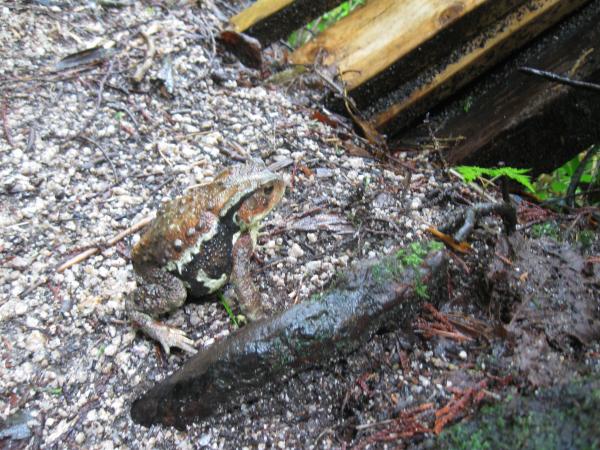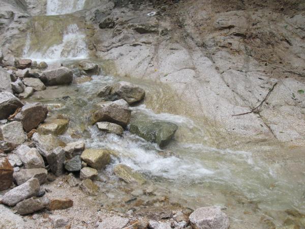濡れた木の根や岩で足を滑らせないように気を使うので