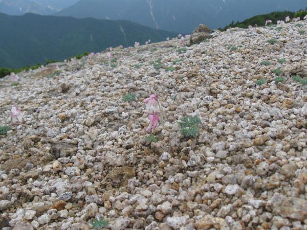 それでも、途中にはコマクサの群落がいくつもあり、歩いていて