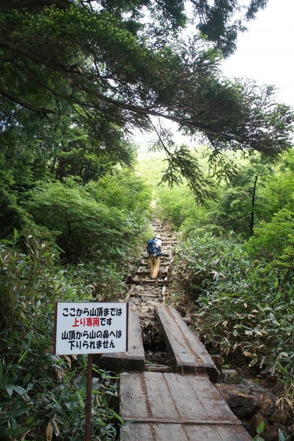 2日目は至仏山に。一方通行の山なのでテントを撤収し尾瀬ケ原名残惜しみながら急登と蛇紋岩との格闘です(><)
