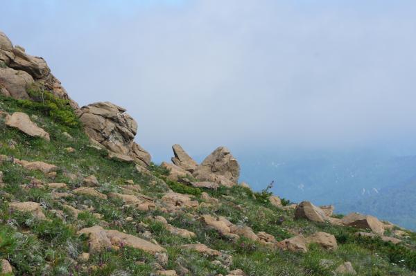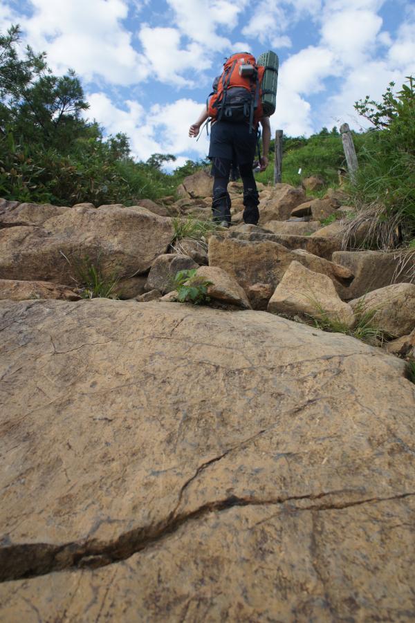 至仏山では急登と名物の「蛇紋岩」が滑り慎重な歩きが要求されます。下りでも同じです。