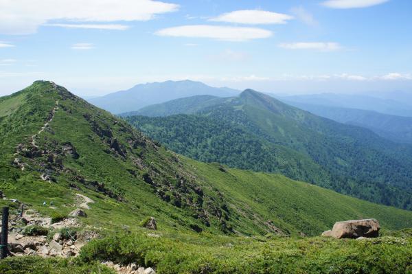 山頂からの景色は360°圧巻♪風対策としてウィンドブレーカーが重宝します。稜線は素晴らしい山々の景色と高山植物が飽きさせません(*^0^*)