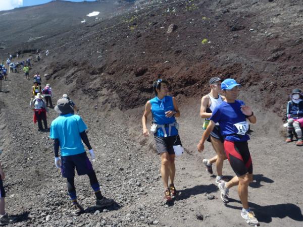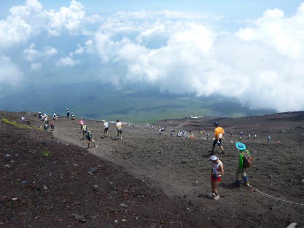 8合目で吉田ルートに合流すると上からゼッケンをつけた方々がびゅんびゅん駆け足で降りてきました!