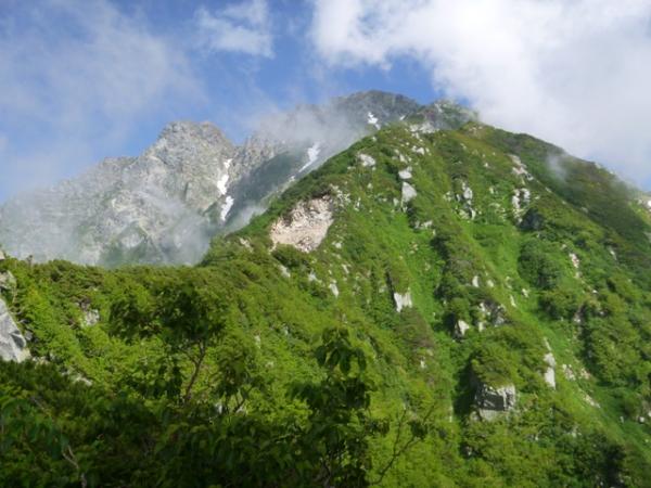 剱岳周辺の雄大な尾根をみながら、次第に岩場が増えていく急登を進みます。
