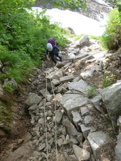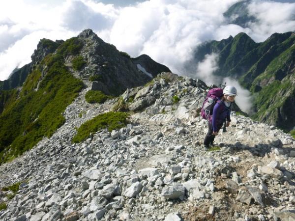鎖場がありますが、別山尾根の「タテバイ」のような急な岩場ではないので、