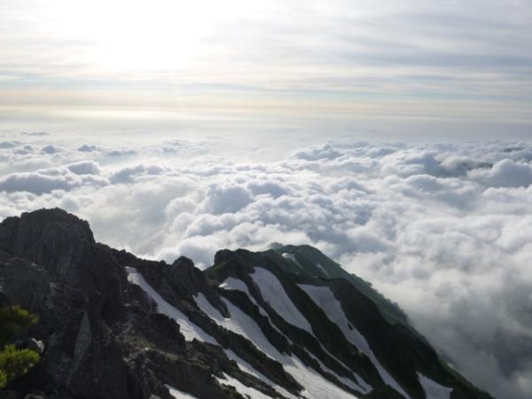 初日は早月尾根を登り、剱岳山頂からバリエーションルートの長次郎谷を下りました。