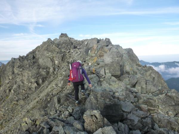 頂上直前からはガレた岩場が続き、落石や浮石に注意しなければいけません。