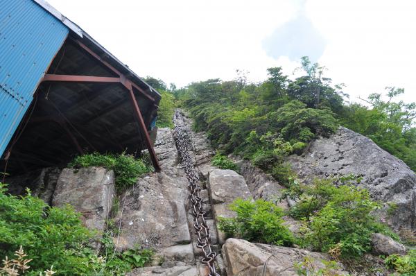 どうやってこれを登るんだ?と思いますが、ちゃんと鎖がついています。