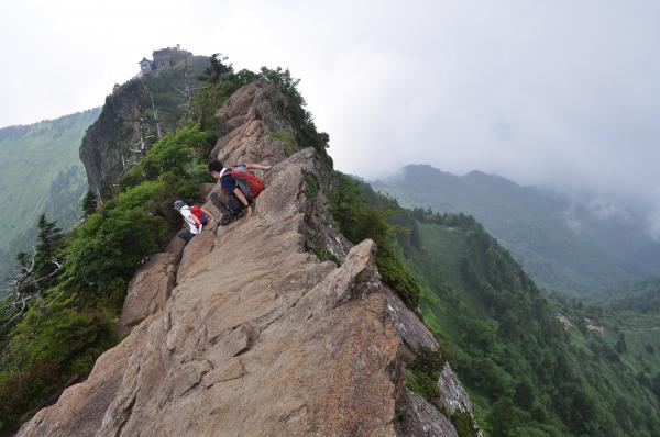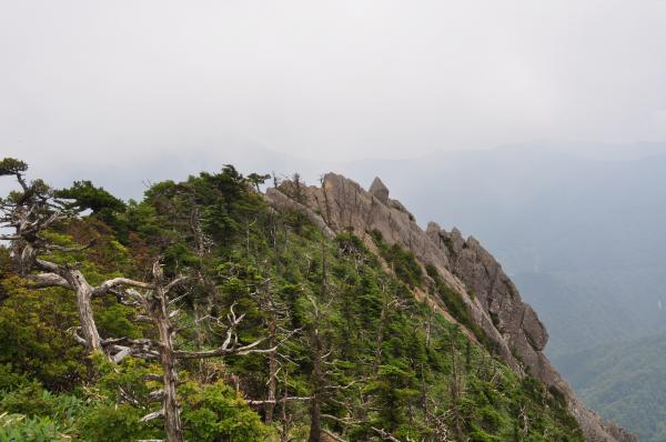 ただ、弥山から天狗岳まではかなり細い稜線。