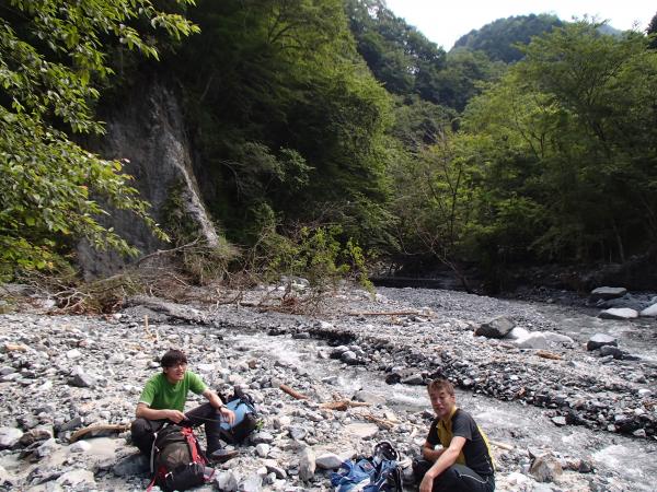 - 丹沢湖 玄倉→小川谷林道 土砂崩れ前→(徒歩40分くらい)→穴ノ平橋→小川谷河原(約5時間)東沢出合い(1時間)穴ノ平駐車場(40分)車
