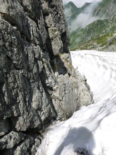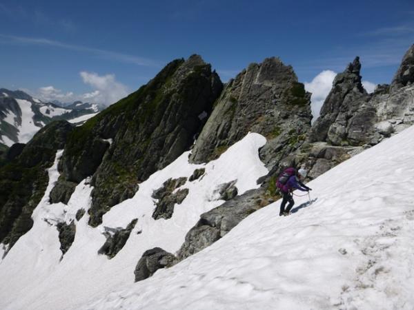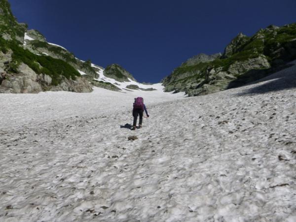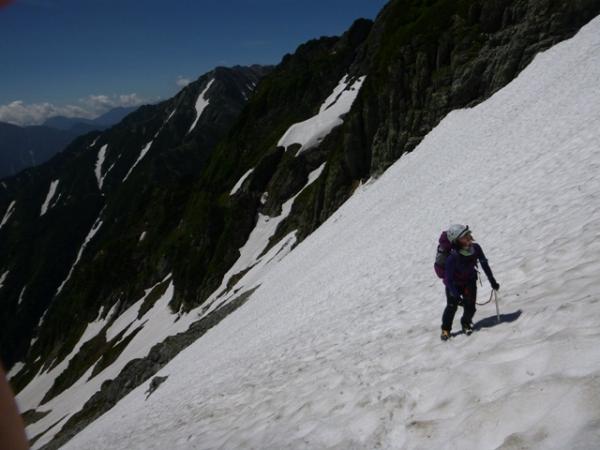 剣沢から平蔵のコルへ突き上げる雪渓の残る谷です。