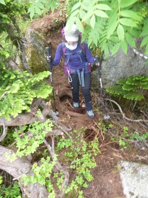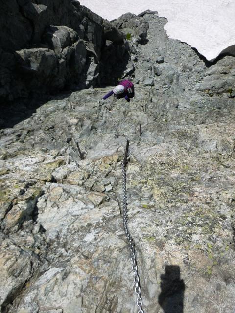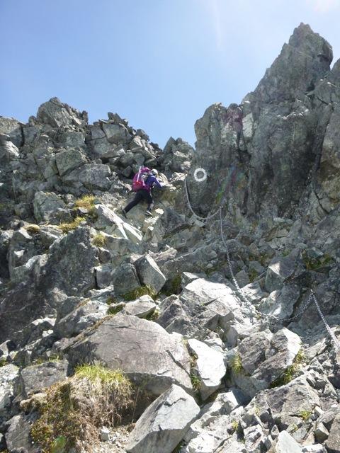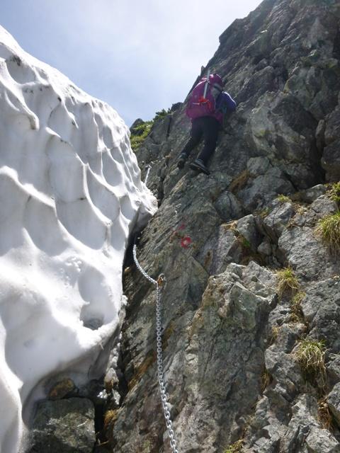 早月尾根の鎖場と違い、「タテバイ」は多くの通行で岩が磨かれており、