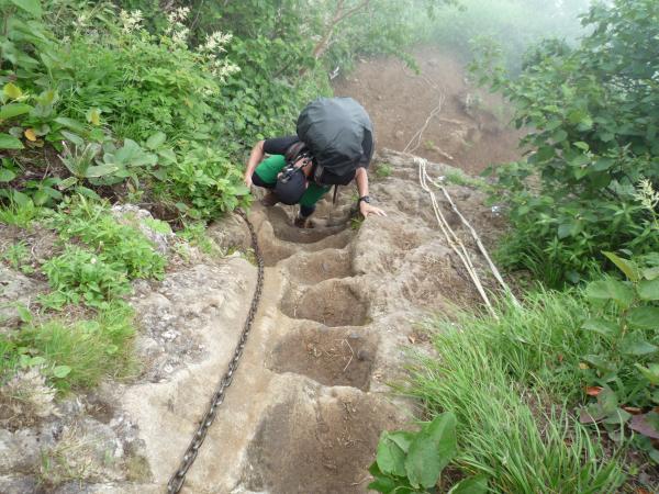 一部の鎖場は高度差もあり、ゆっくり慎重に行きましょう。ステップが刻まれているので、歩き易いです。途中でステップが無くなるので慎重に。