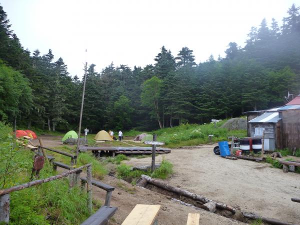 - 8/6 夜叉神峠登山口<75>夜叉神峠<95>杖立峠<120>苺平<35>南御室小屋テント場