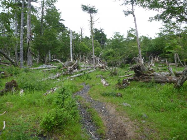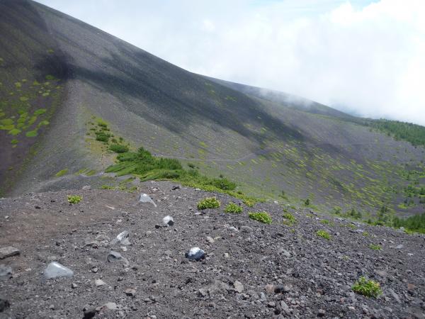 宝永山山頂-(30分)-宝永第一火口底-(10分)-新五合目分岐-(20分)-御殿庭上-