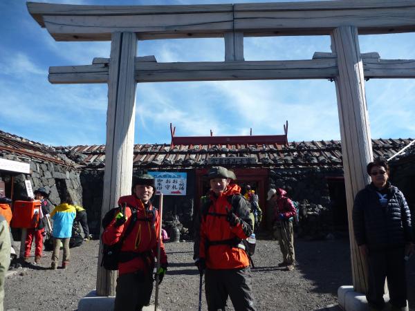 新七合目(御来光山荘)-(35分)-元祖七合目(山口山荘)-(35分)-八合目(池田館)-(35分)-九合目(万年雪山荘)-(30分)-九合五勺(胸突山荘)-(45分)-富士宮口頂上-(15分)-剣ヶ峰-(50分)-久須志神社-(15分)-富士宮口頂上-(5分)-