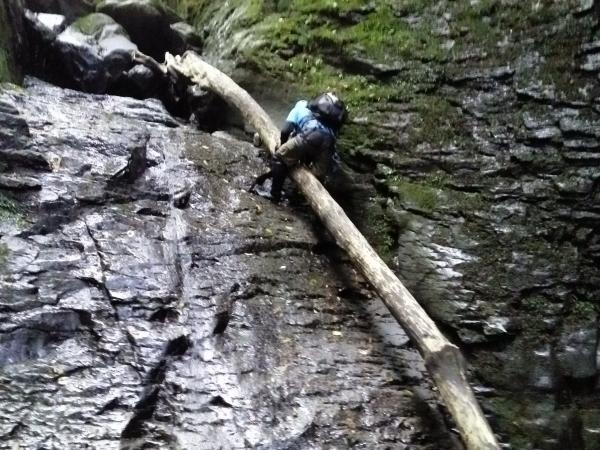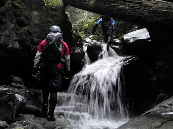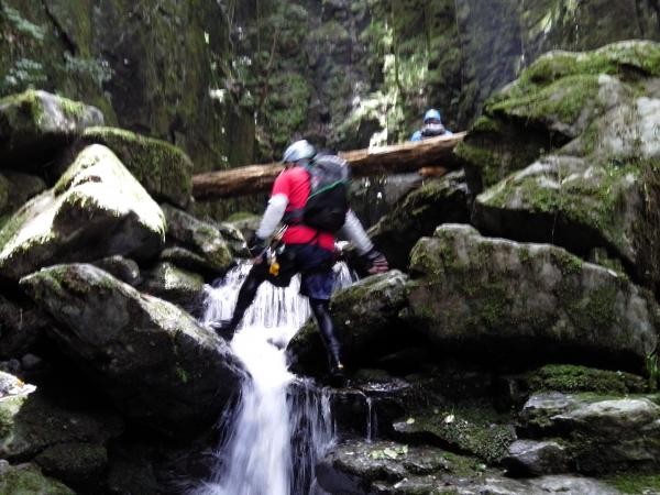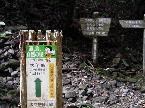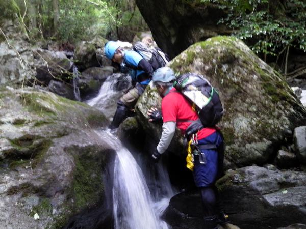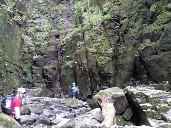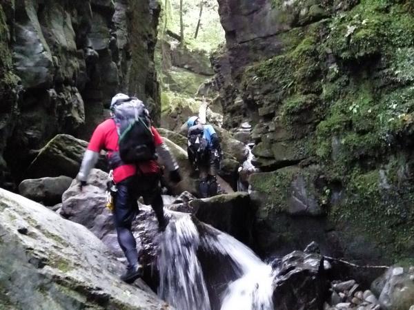 - 犬ヶ岳登山口(15)入渓口(70)大岩(30)ゴルジュ入口(90)木橋(60)犬ヶ岳登山口