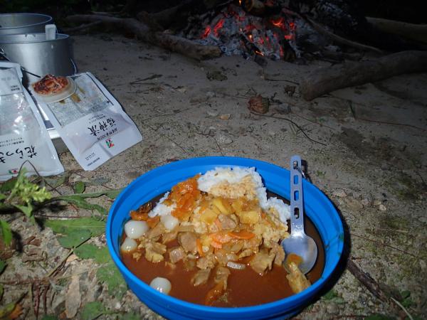 夜はジャワカレーならぬ沢カレーとイワナで明日のためにおなかを満たす。