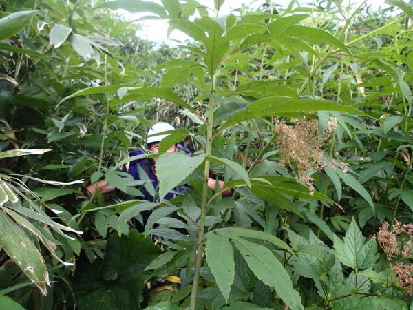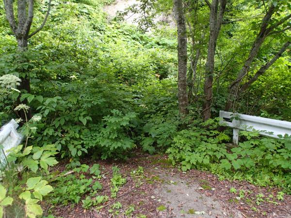 うっそうとした藪の中の道をかき分けながら進む。藪こぎ以上けもの道未満。