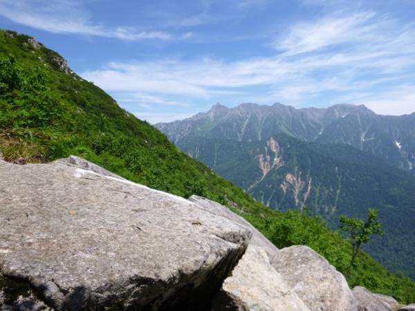 道は歩きやすく、少し標高をあげると槍穂連峰が一望でき、