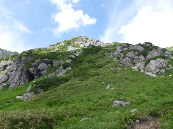 笠ヶ岳からクリヤ谷ルート方面は、しばらくガレ場を歩きます。