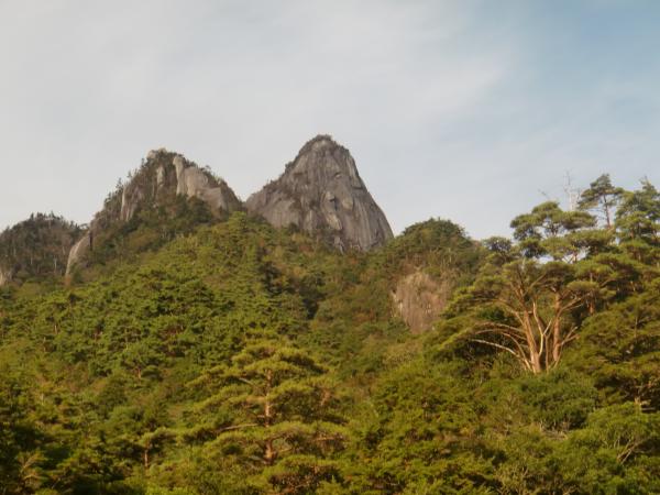 - 大崩山登山口==(35分)==大崩山荘==(100分)==見返りの塔==(50分)==象岩==(15分)==小積ダキ==(60分)==上湧塚==(50分)==袖ダキ分岐==(50分)==湧塚コース分岐==(55分)==大崩山荘==(35分)==大崩山登山口