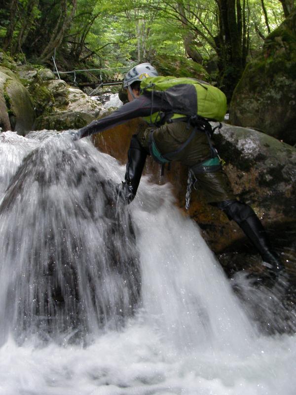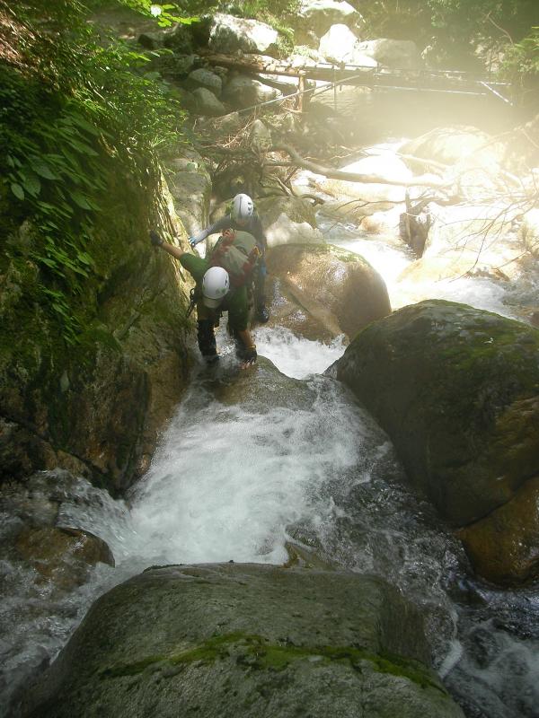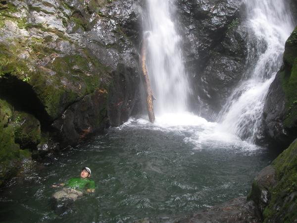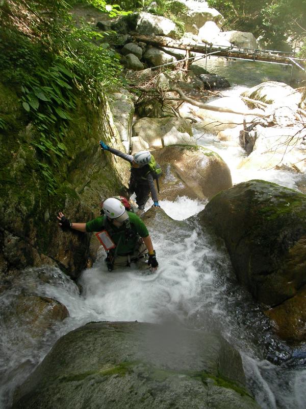 特に難しいところもありませんが、高度のある滝は初心者の方にはロープを出して安全に通過するのがよいかと思います。ぬめりが結構あり、油断は禁物でした。ゴールには25mの夫婦滝が出迎えてくれとてもいいコースだと思います。