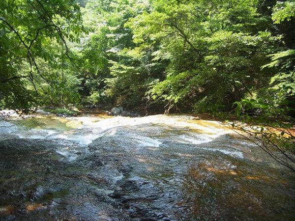 玉簾の滝は高さこそ10m程しかないですが幅が広く滝の上流には滑床を抱えます