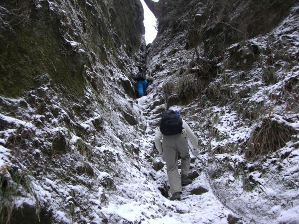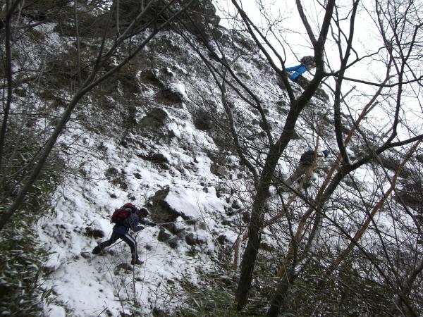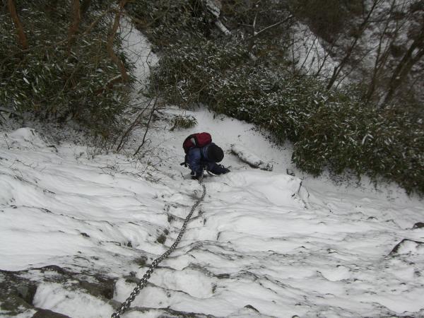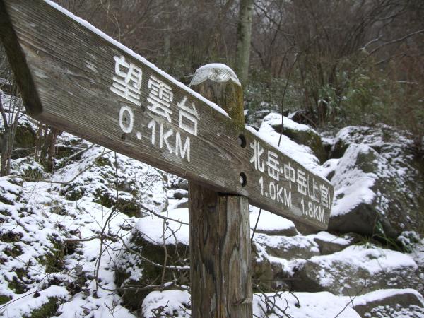 ・積雪の望雲台は半分肝試しのようなコースです。なので、私のように高いところが苦手な方は分岐で仲間の帰りを待っていてもいいかもしれません(笑)とにかくスリップだけに注意して登ってください。6本以上のアイゼンがあればもう少し楽に登れるのではないでしょうか。