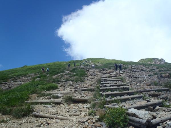 - ロープウェイ~熊穴沢避難小屋(45分)~天狗の留まり場(45分)~肩の小屋(40分)