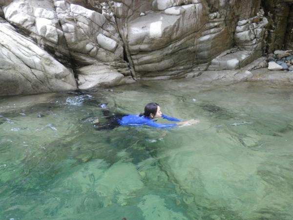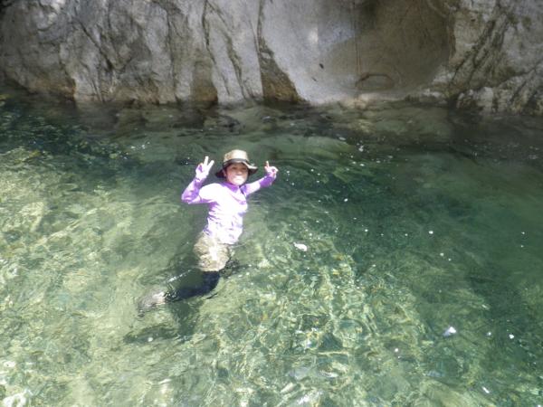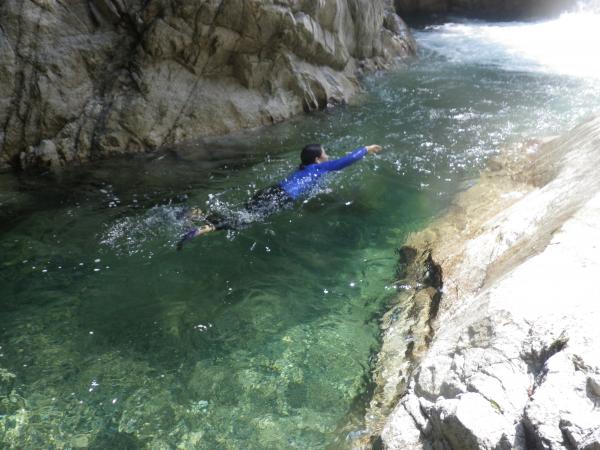 今年やっと沢遊びができました。川の水は冷たく最初のひと浴びは勇気が要りますが、その後は気持ちいい!