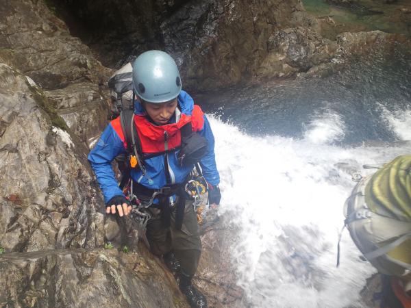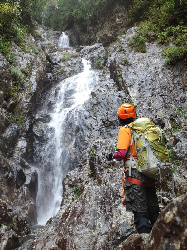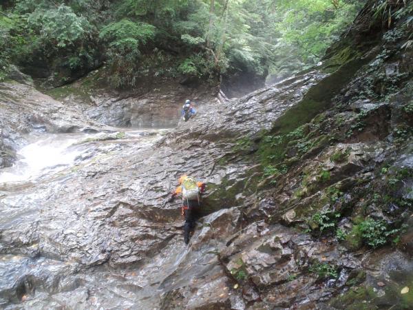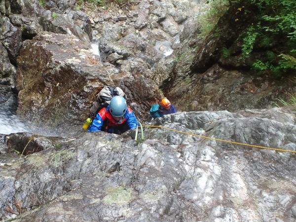 2段25mの滝が現れてからが本番で、ココからが「クライミング」を楽しめます。