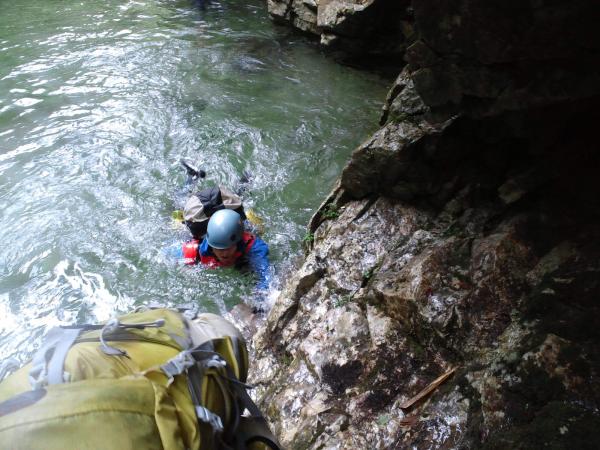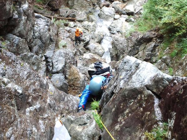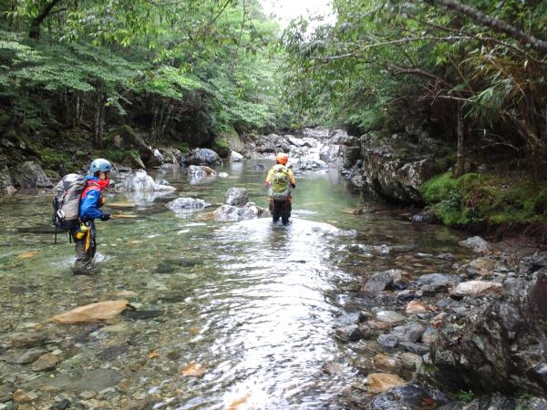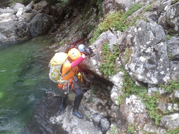 増水時、高巻きが増えます、ロープは必須、長丁場の為基礎体力は必要。