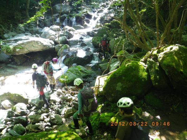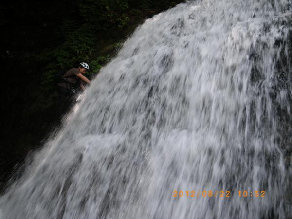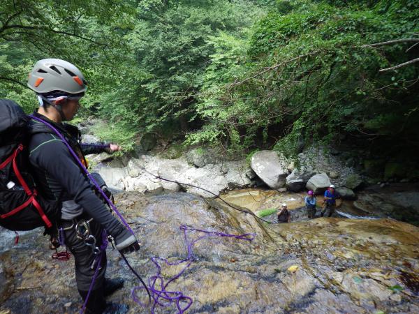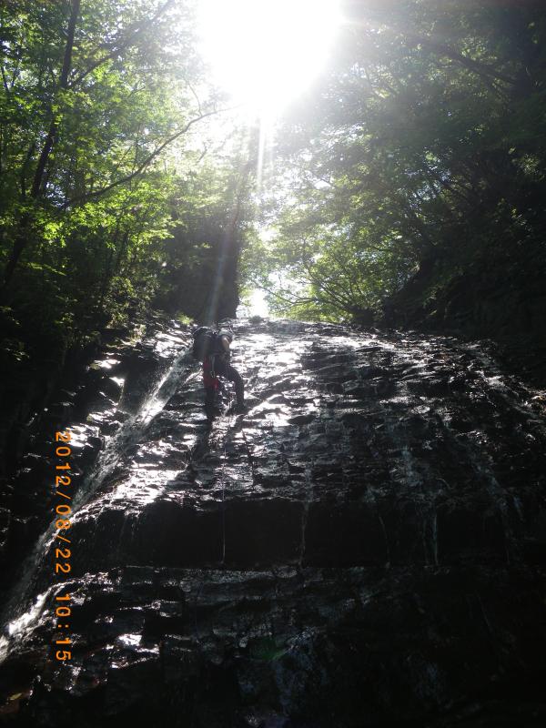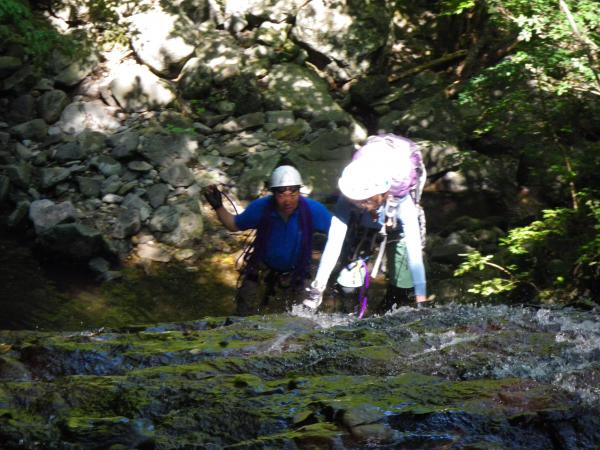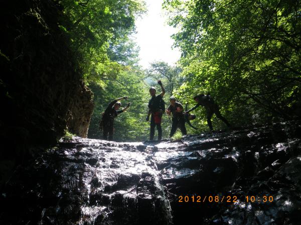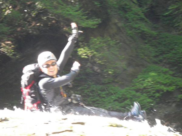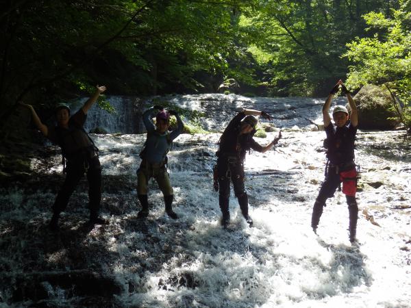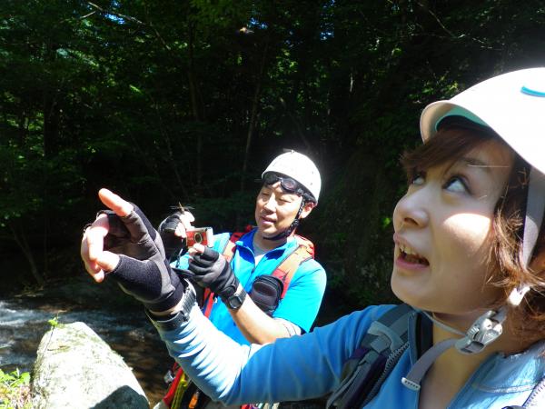 小澤店長を筆頭に、元ワンダーフォーゲル部の皆さんにサポートされながら、心地良い森林を下り、滝をヨジヨジ、ナメをスイスイ、童心にかえって思いっきり沢を満喫♪なんと、天然のワサビまで発見しちゃいました☆(≧∀≦)