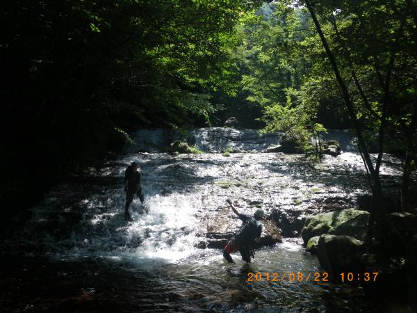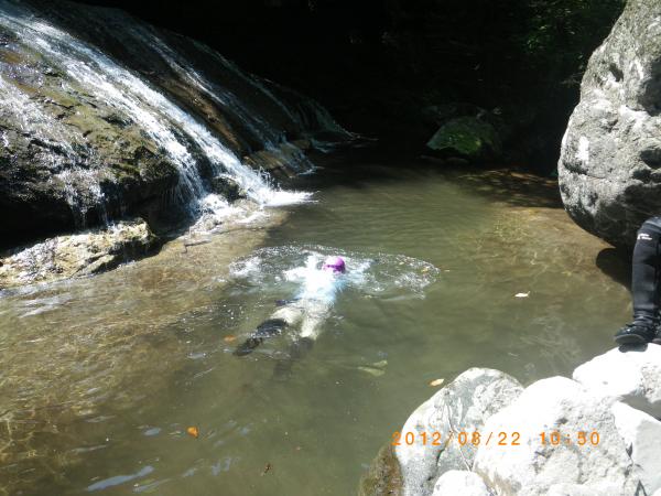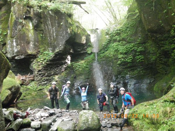 滝のしぶきをめいっぱいに浴び、なが~い岩場を登り返し待っていたのは、美しい精霊が出て来そうなそれはそれは素敵な釜のご褒美でした★*。+*(参加者の皆さん写真提供ありがとうございました^^)