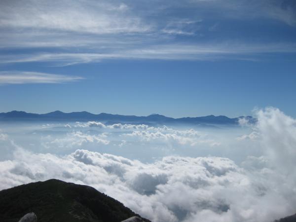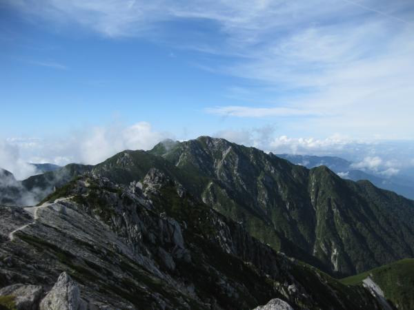 - 駒ヶ根・空木岳登山口(3:50)→池山小屋(5:25)→空木岳(8:20)→木曽殿山荘(9:15)→熊沢岳(10:45)→檜尾岳(11:55)→宝剣岳(14:15)→木曽駒ケ岳(15:50)→千畳敷・ロープウェー駅(16:25)