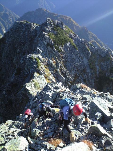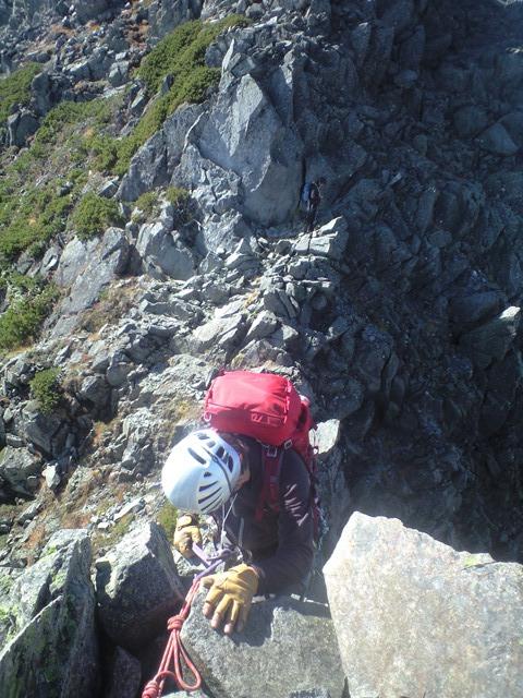 4峰の登りは脆く、落石は絶対に起こさないように!足元の石も動くので慎重に登るべきです。