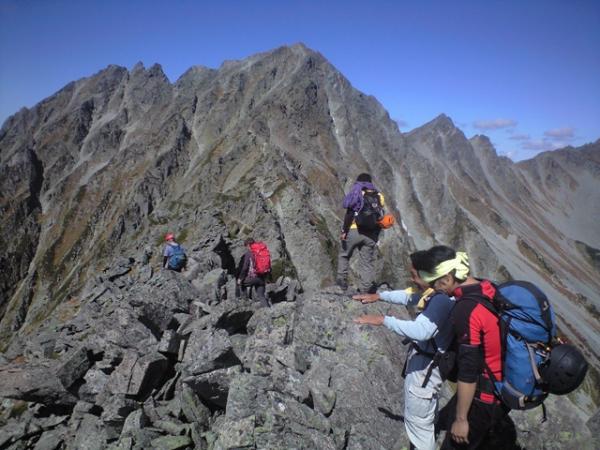 前年、同じメンバーで前穂高北尾根を同時期に登ったのですが、途中から降雪に見舞われ、3峰手前で敗退していたので、今回はそのリベンジも兼ねて再度同じメンバー+2名で登りました。
