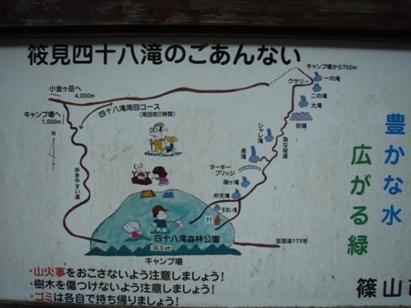 - 四十八滝キャンプ場~(60分)~筱見四十八滝終点~(70分)~四十八滝キャンプ場