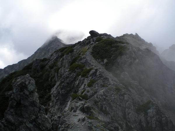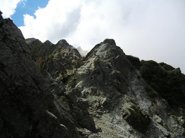独標以降は、ほぼどのピークも明瞭な巻き道がついていますが、巻きすぎないように、また稜線にどこで戻るか考えて巻いたほうがいいと思いました。ガスが出ていたこともあり、今回は独標とP14以外は基本的に稜線を進みました。