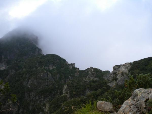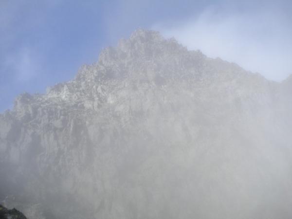 天気の回復を待つため、西岳ヒュッテに一泊して日をずらしたものの、結局ほぼガスと雨の中での行程となり、苦戦を強いられました。