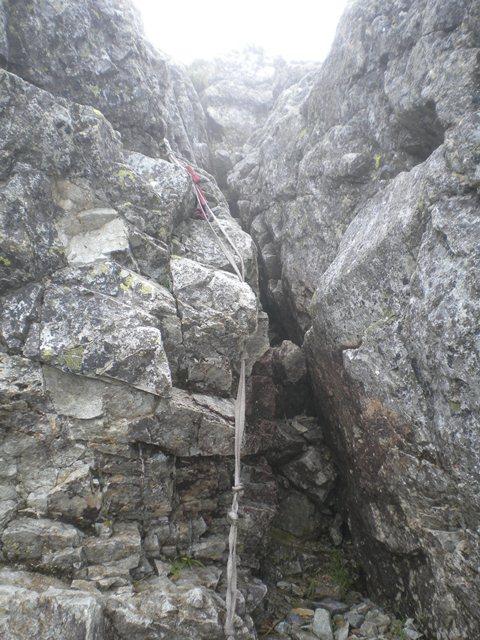 最後のチムニーは、ザックを下ろして右側から1人登り、ロープを出しました。このチムニー以外はロープなしで通過できました。