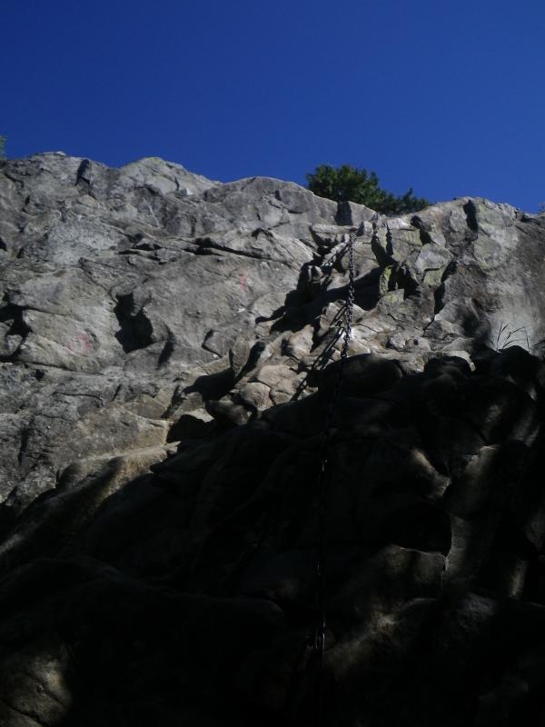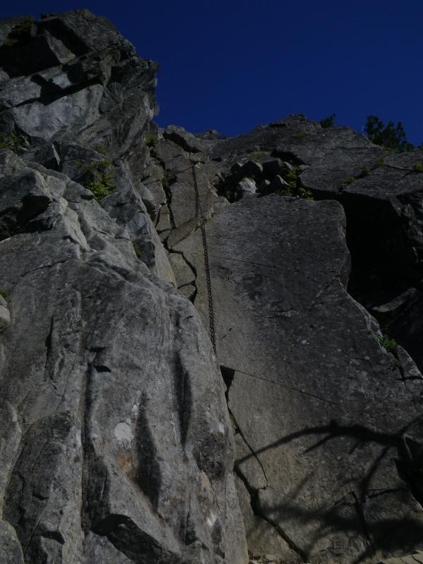 取りついてみると意外とホールドはなく、全般にいやらしい鎖場です。でも鎖をつかんでいれば大丈夫!適度な高度感が味わえて爽快です!