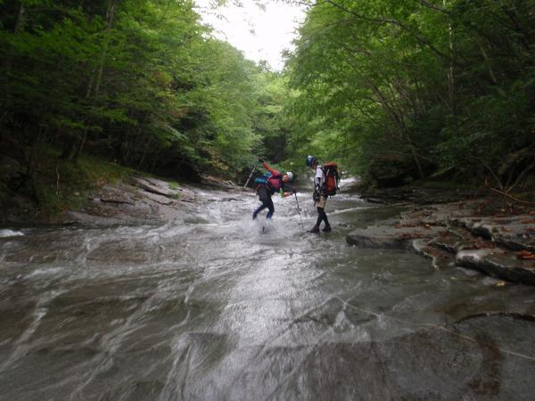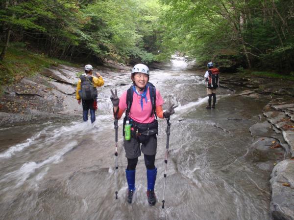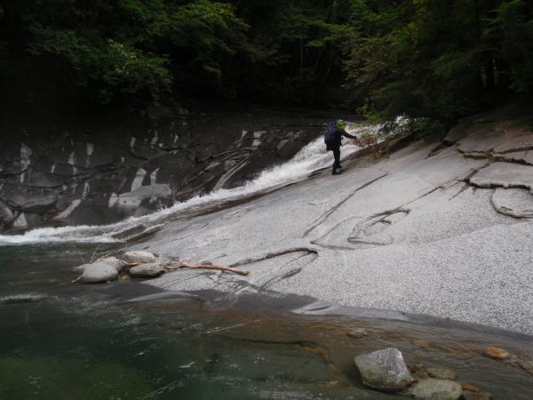 釜ノ沢はその名の通り釜が多く、透き通った綺麗な水がとても印象的です。千畳のナメも一見の価値があると思います。