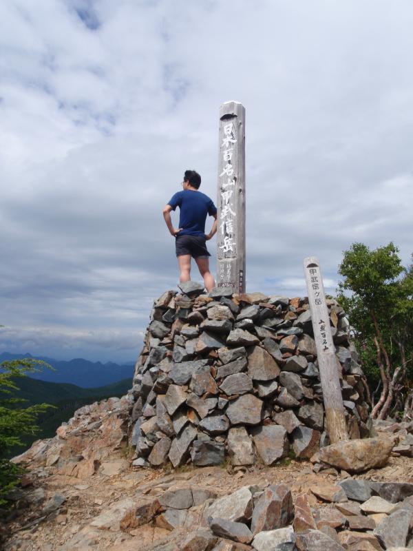 ビバーク地8:00発⇒ポンプ小屋10:30(遡行終了)⇒甲武信小屋11:00⇒甲武信岳山頂11:25着⇒甲武信小屋11:50⇒近丸新道より下山、林道出合着15:05