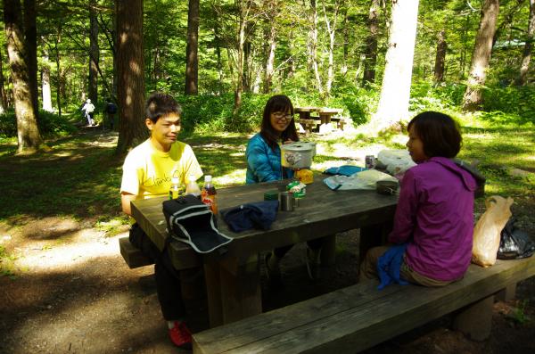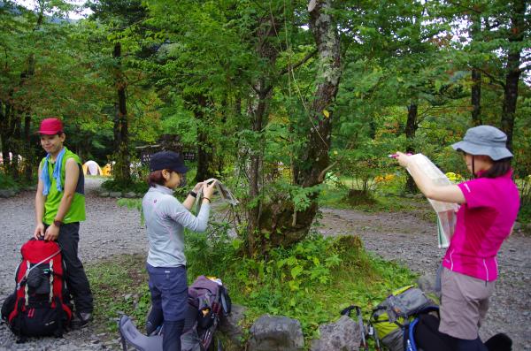 - 1日目 上高地バスターミナル→2:20→横尾山荘→1:50→ババ平キャンプ場