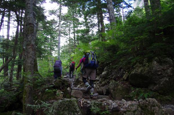 ピストンなので、2日目はババ平に荷物を置き、サブザックだけの山行。朝早く、ヘッドランプで歩きました。長くだらだら暑いところを、まだ暗くて涼しいうちに抜けたい!というバテ対策。